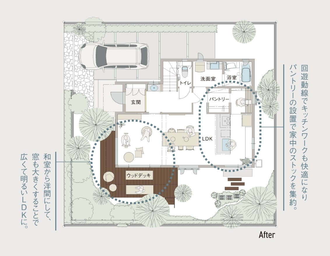 キッチンリノベーションで、毎日の家事効率をアップ。動線から見直して、機能性とデザイン性の高いキッチンをLDKの中心に。
